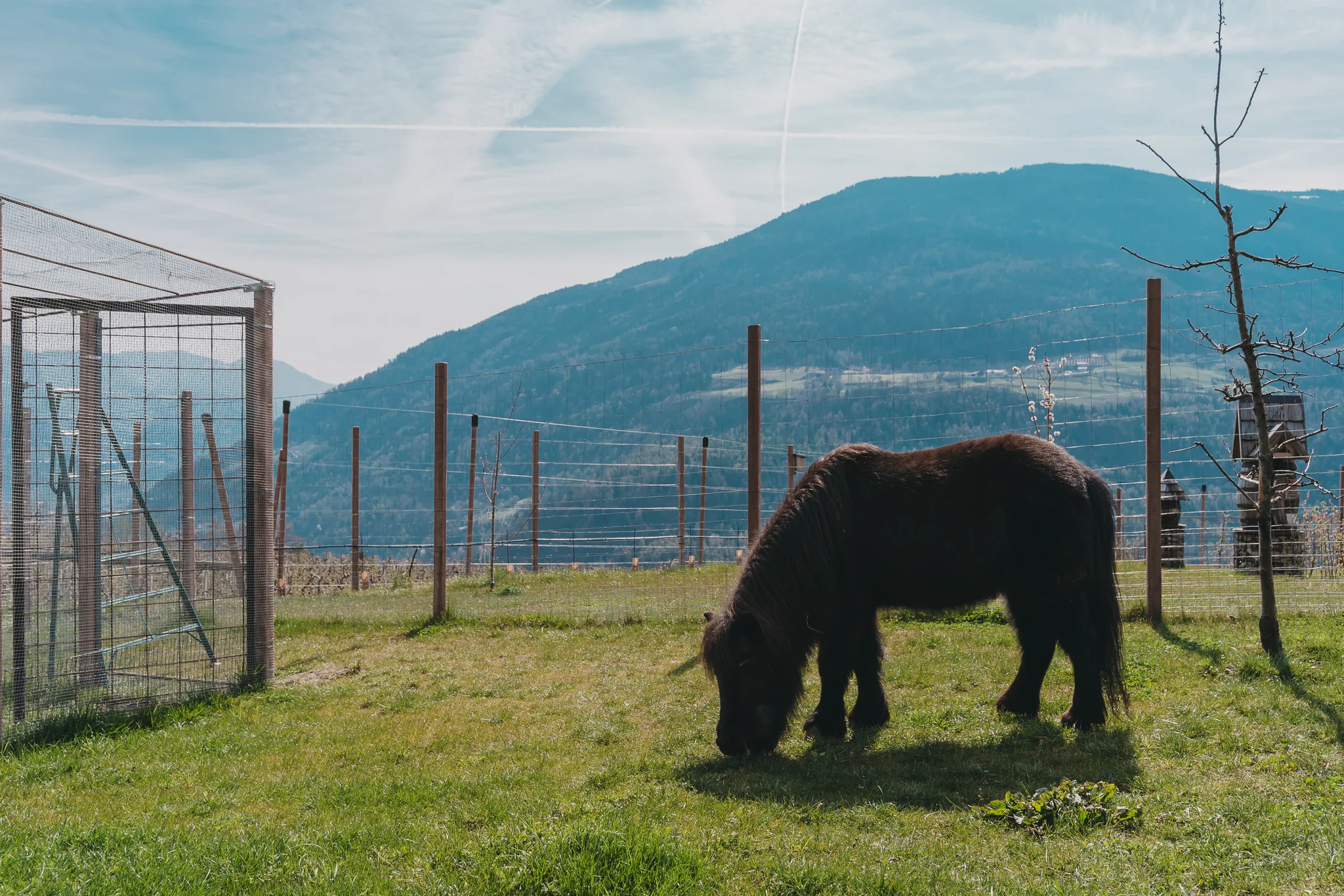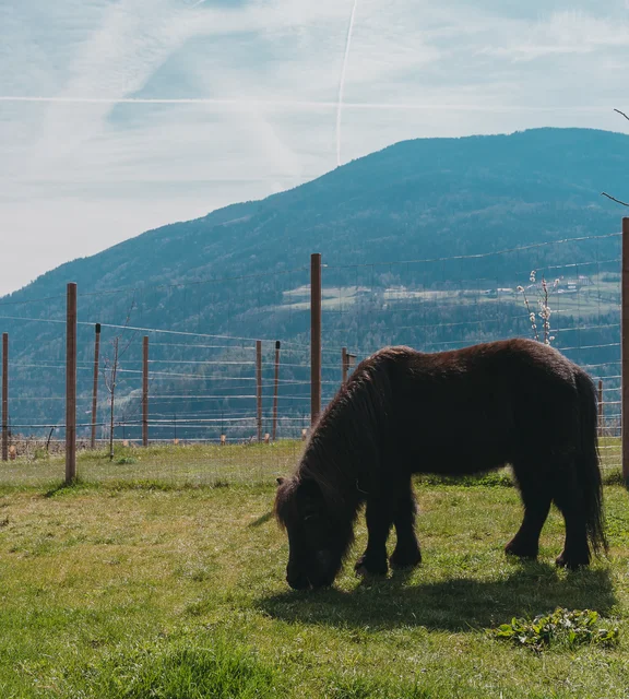 Es wiehert, gackert, blökt, quakt und bellt auf dem Vertignerhof: Auf unserem Hof ist tierisch was los! Blacky, unser Shetlandpony, genießt seinen Ruhestand und faulenzt am liebsten. Dafür halten unsere Laufenten alles auf Trab. Die zwei Walliser Schwarznasen-Schafe Rosi und Susi sind Zwillingsschwestern und recht quirlig unterwegs. Unsere Hasen werden gerne mal gestreichelt. Über den Hof trippeln auch noch unsere Hühner, die uns täglich frische Eier schenken.
